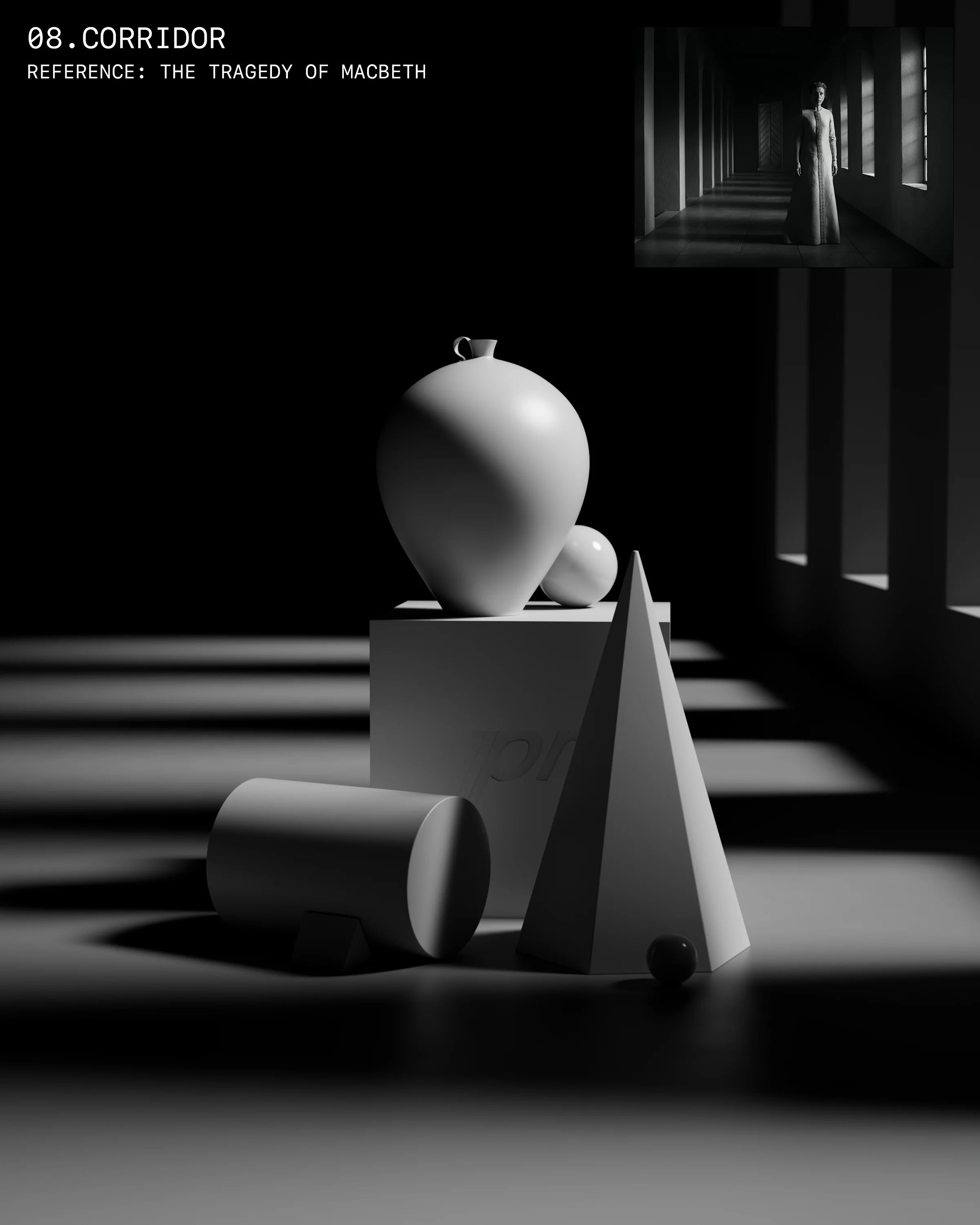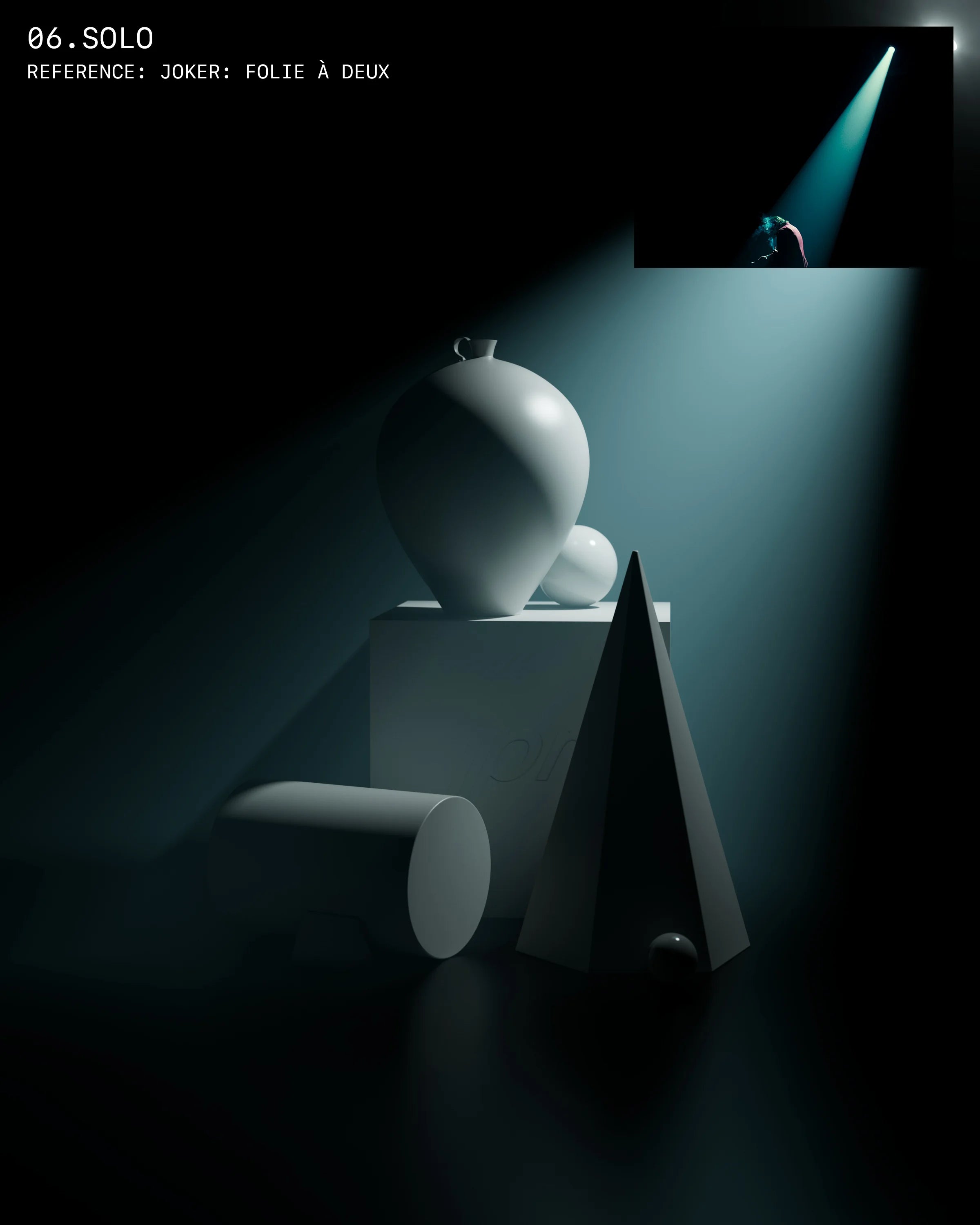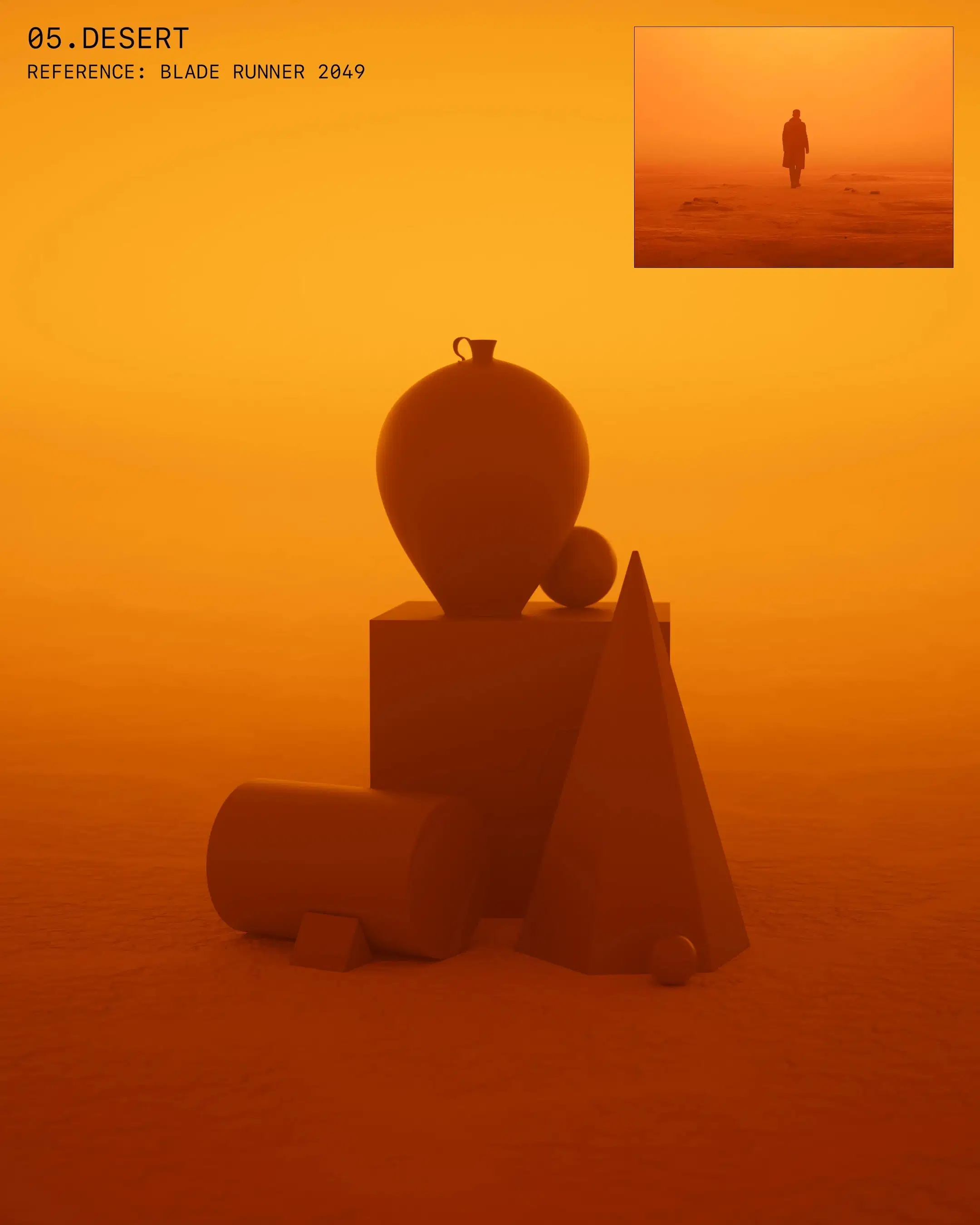 PRÉSET Cinema is a collection of 8 pre-configured 3D scenes, each inspired by a distinct cinematic lighting setup drawn from iconic films. Designed to evoke the visual language of cinema, these scenes provide an expressive foundation for atmospheric product renders and narrative compositions.